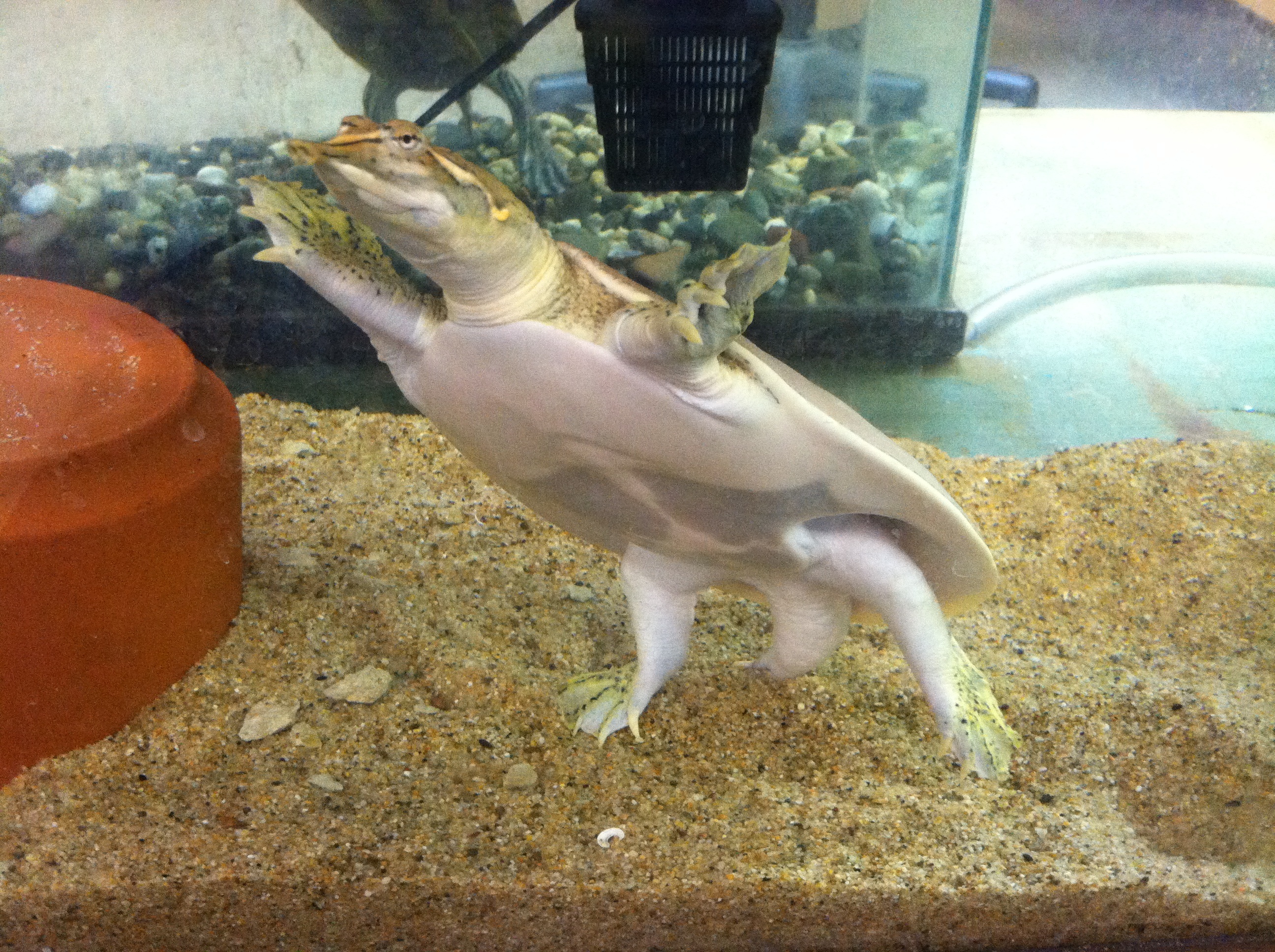• This is Pancake, our resident soft-shelled turtle.