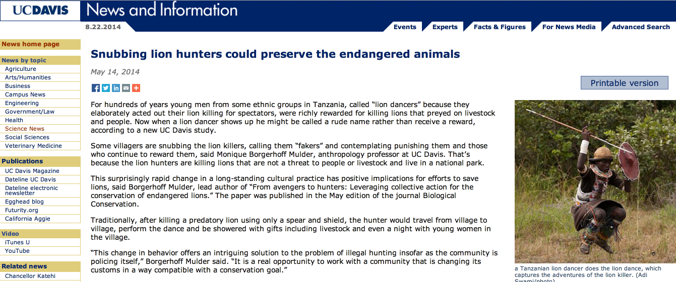 UC Davis News: Snubbing lion hunters could preserve the endangered animals