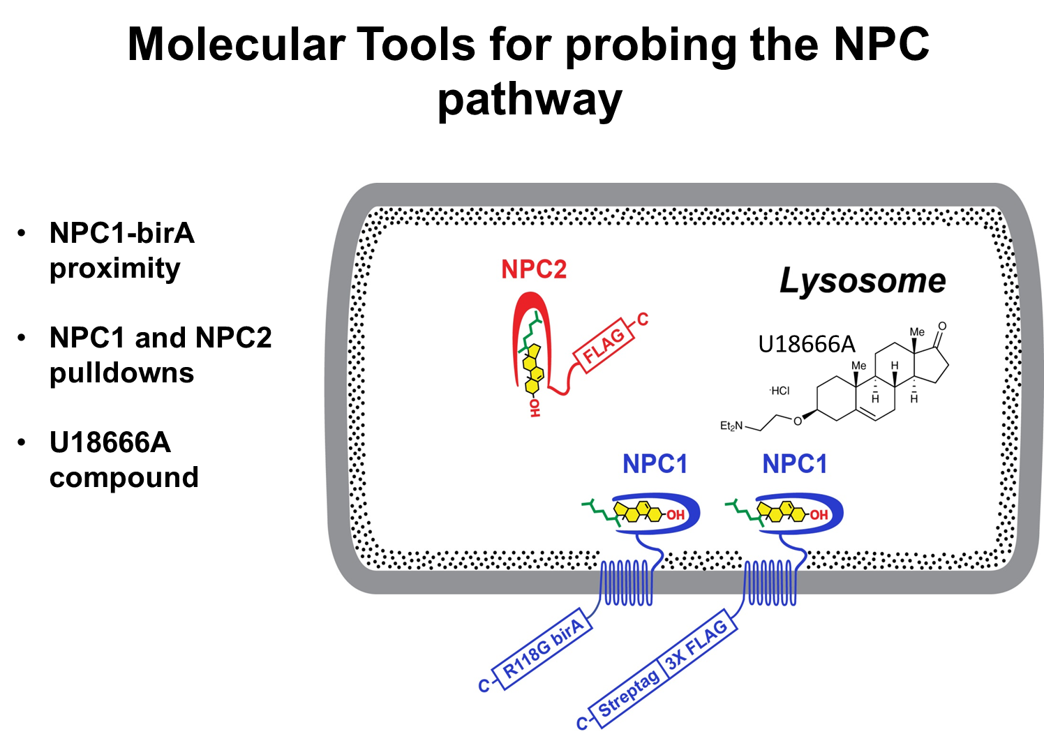 We have developed several tools in order to find NPC1 and NPC2 binding partners. U18666A compound mimics NPC disease. U18666A compound is another tool we can use to probe this system.