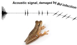 Frogs make adjustments in their calls according to social context and air temperature. These factors are relatively well known, but studies documenting changes in acoustic traits by pathogen infection are incipient. Our project will try to understand if fungal infected Neotropical frogs present alterations on acoustic traits in their calls. Understanding the effects of this emerging pathogen on frogs’ behavior is essential for the conservation of many endangered species across the planet.