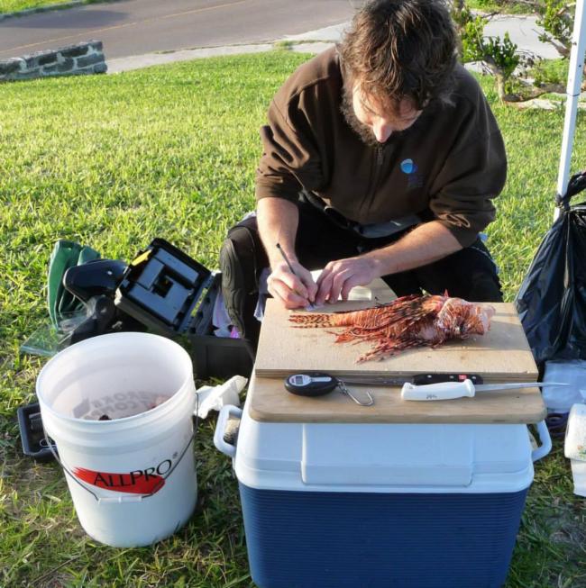 A team of scientists from Bermuda is gathering data to model the ecological impact lionfish may have on their coral reefs and to develop a targeted removal plan that controls the growth of this population to minimize its damage. This project will focus on the growth and feeding habits of lionfish to complete that model and explore the relationship between lionfish, their prey, and the entire ecosystem.
